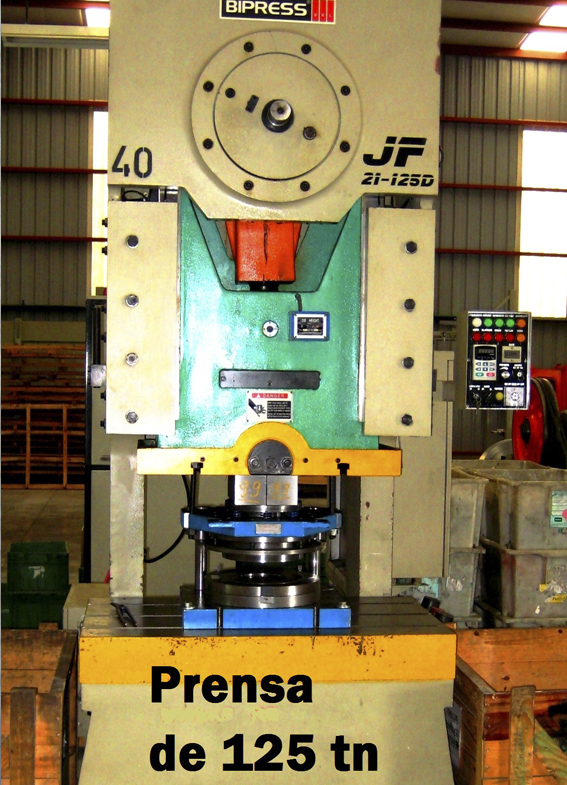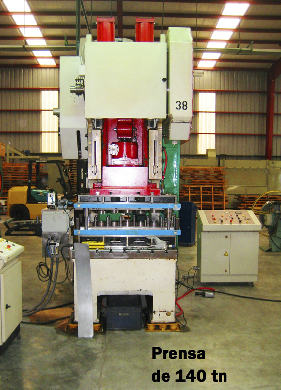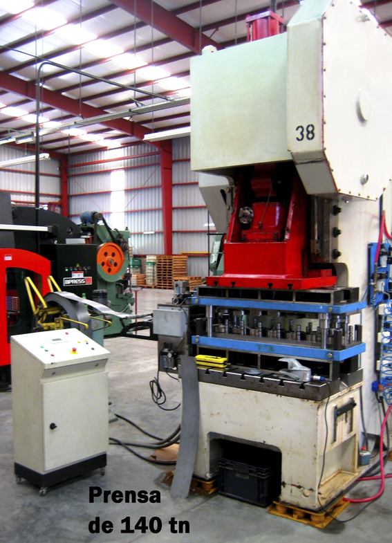 Estampado con matricería progresiva y alimentación electrónica. Se incluye como proceso de estampado el embutido y cortante de piezas metálicas con matricería en prensas y balancines.